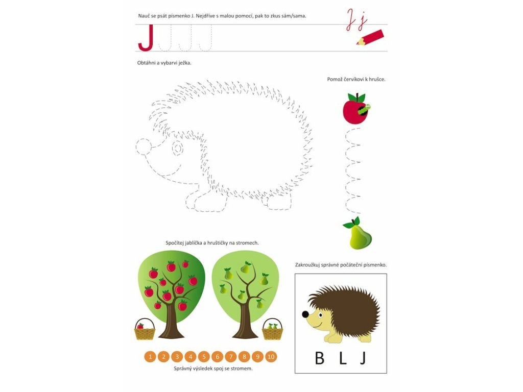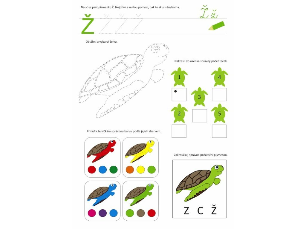 Dětská pracovní knížka, obsahující 32 aktivních stran zábavy, omalovánek a úkolů. Hravou formou výuky se děti naučí nejen písmenka celé abecedy, ale zdokonalí se také v logickém uvažování a grafomotorických dovednostech.