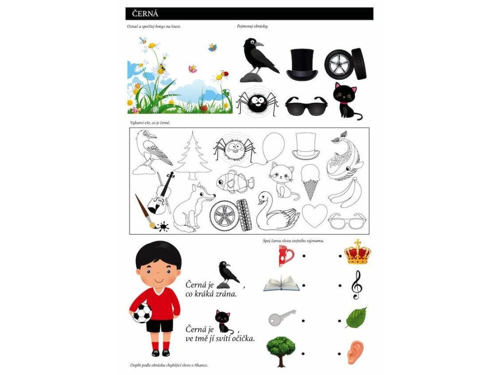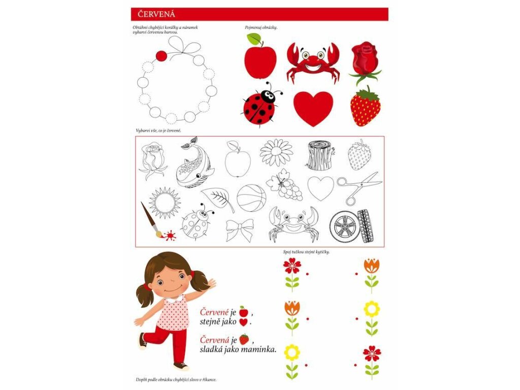 Hravou formou výuky se děti naučí nejen rozpoznávat barvy a tvary, ale také se zdokonalí v logickém uvažování, grafomotorických dovednostech a zrakovém vnímání. Knížka navíc obsahuje veselé obrázkové říkanky pro rozvoj řeči dítěte.