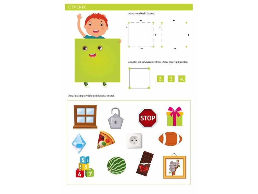 Dětská pracovní knížka, obsahující 32 aktivních stran zábavy i speciálních úkolů, zaměřených na výuku barev a tvarů.